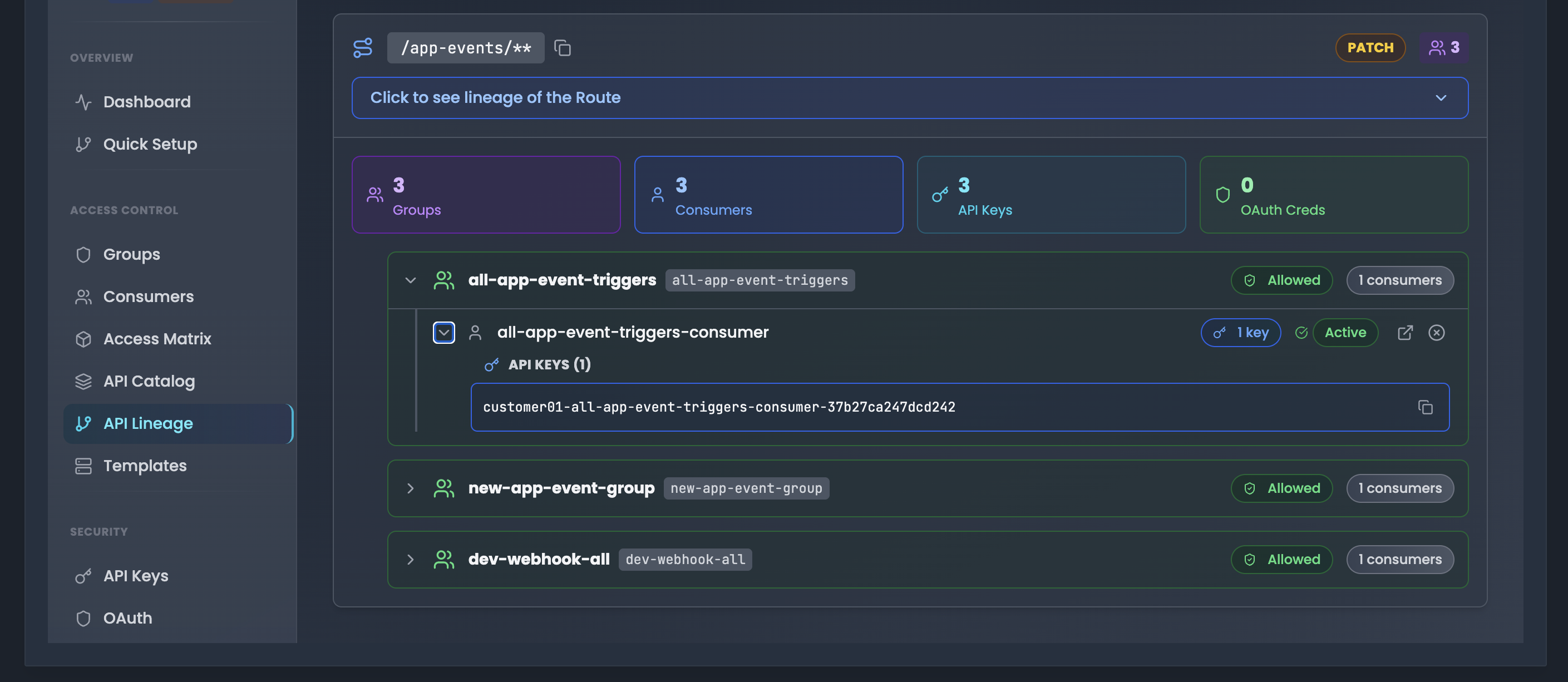 - Synchronizes groups, consumers, allowed/denied routes, IP restrictions, Time restrictions, API keys, OAuth clients, and ACLs to API Gateway