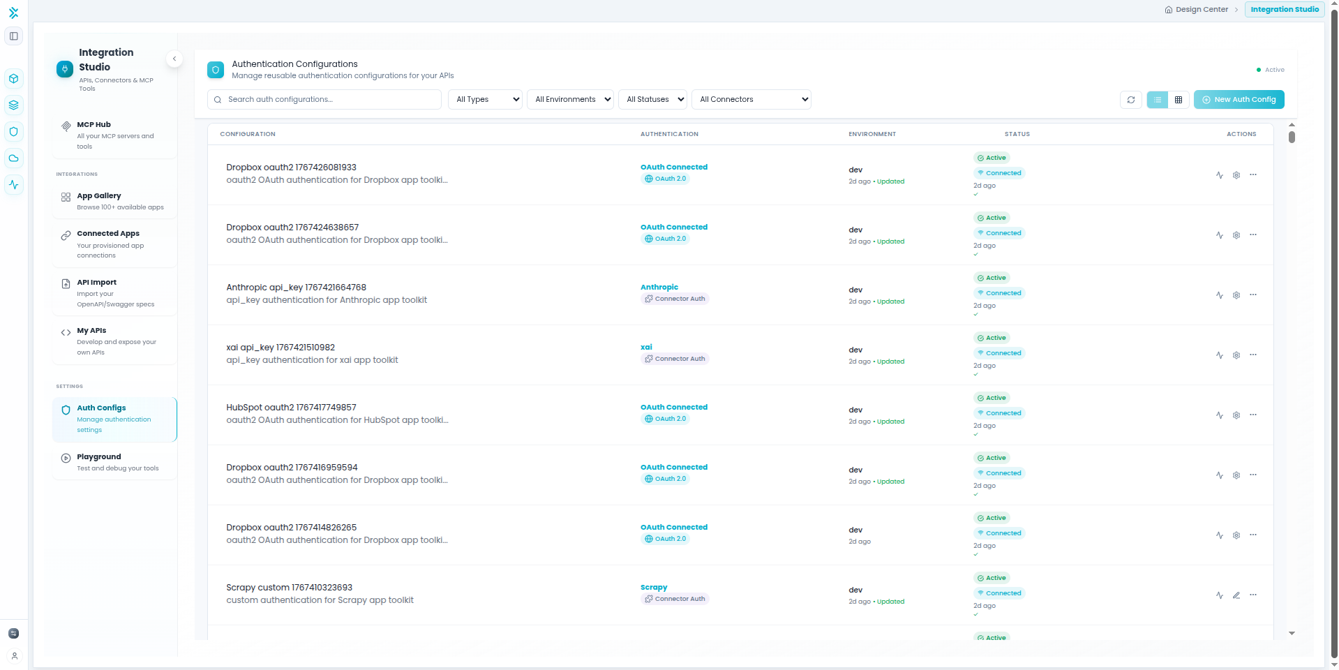 Most APIs require authentication. Configure this in the Auth Configs section.