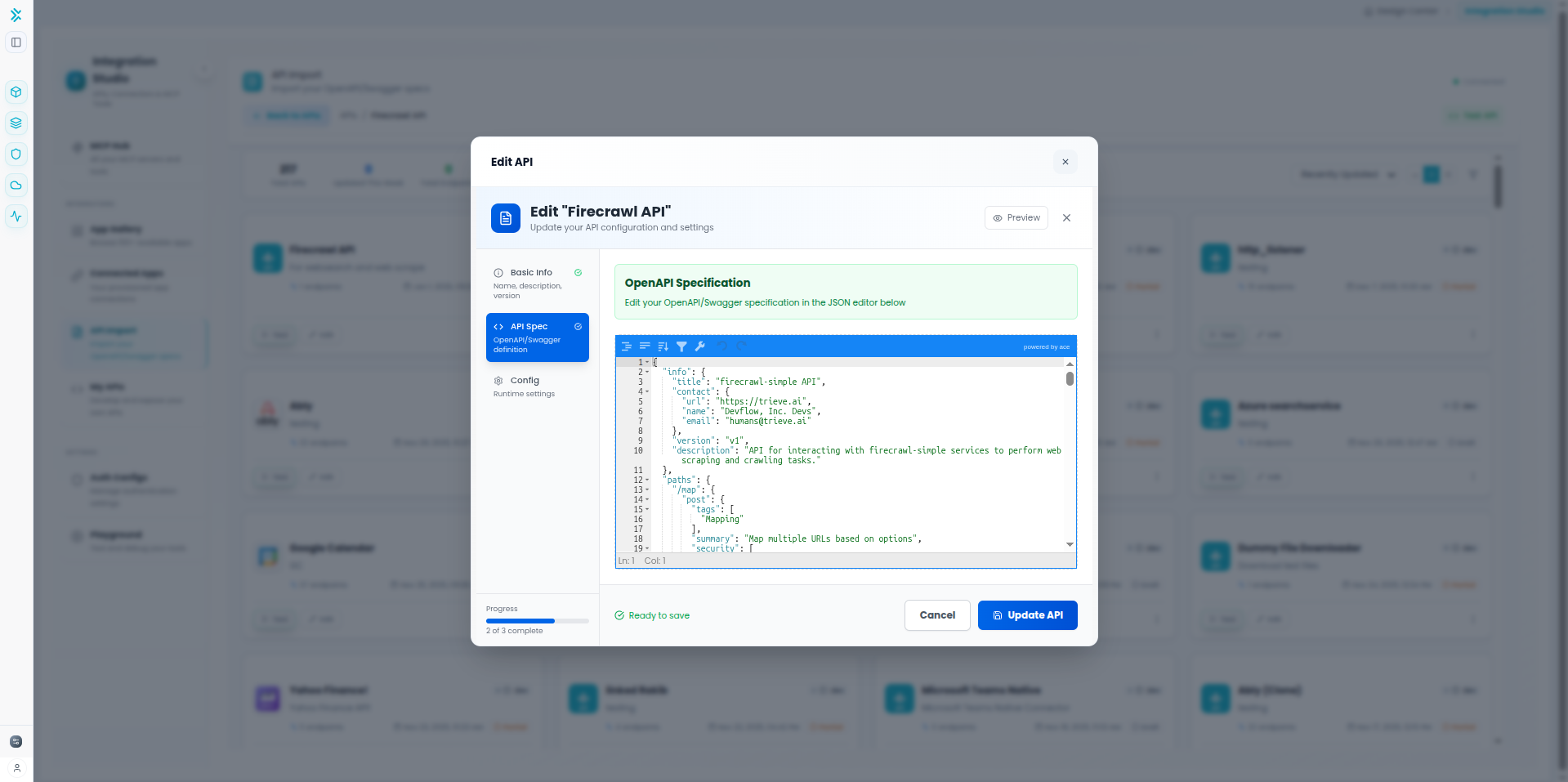 - Secure Credentials: Never paste hardcoded API keys in the spec itself. Use the Auth Configs feature.