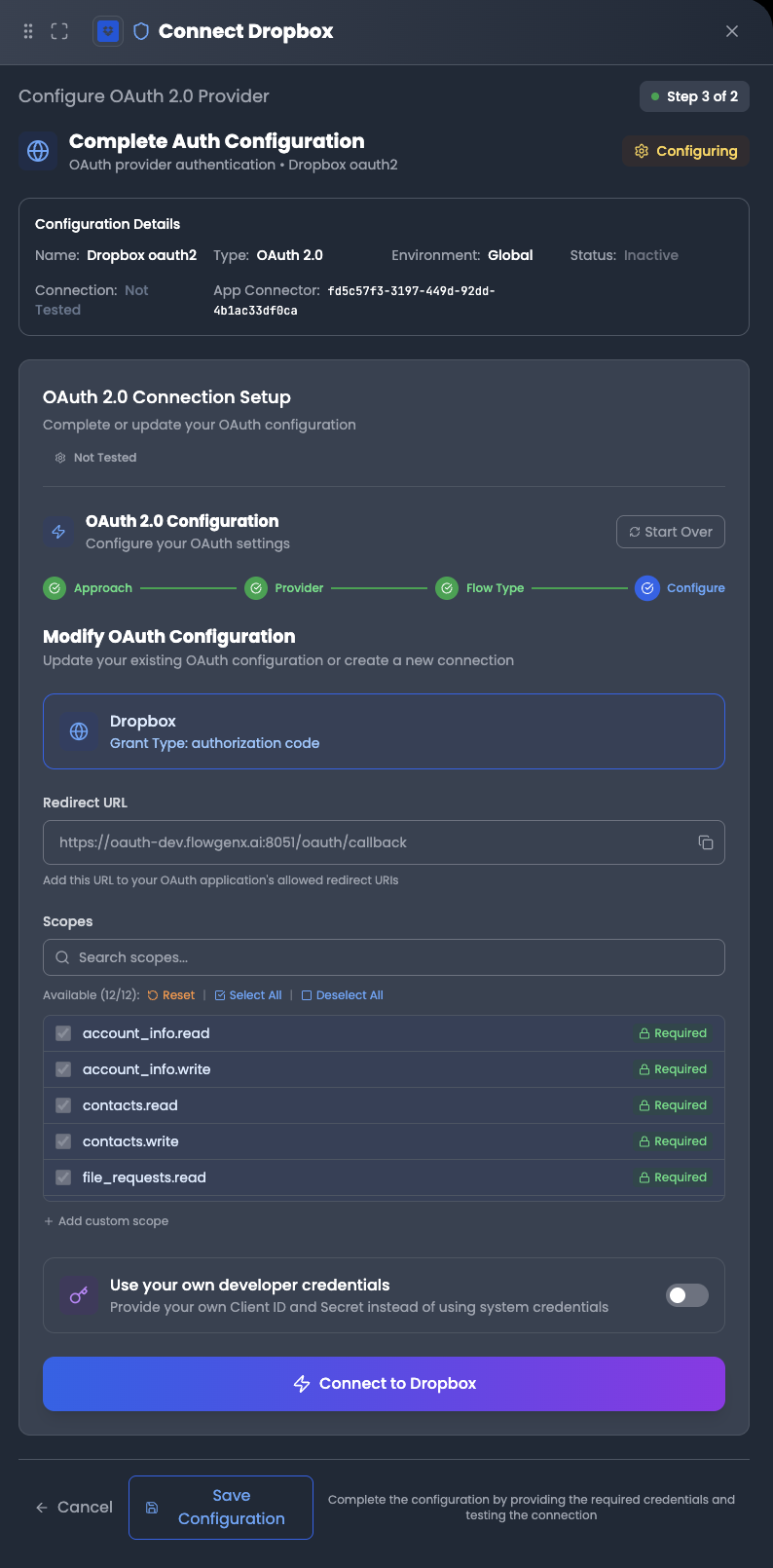 - Automatic Token Refresh: FlowGenX handles token refresh automatically