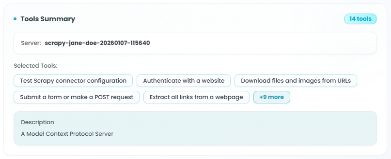 - MCP Server: Connect Scrapy server with 14 tools for comprehensive scraping capabilities