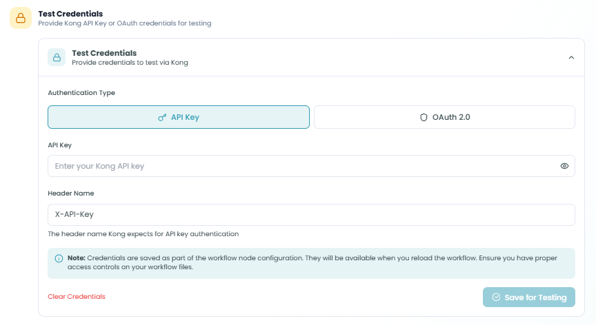 - Solution: Verify credentials are saved ("Save for Testing")
